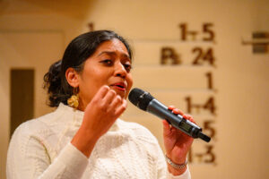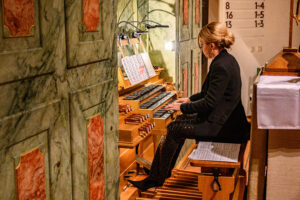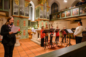 Für glanzvolle Momente sorgten Anupa Paul und Natalia Lebedinets mit ihren Soloeinlagen. Anupa Paul stimmte ein indisches Weihnachtslied an und Natalia Lebedinets sorgte mit Orgelstücken von Händel, Neefe und Bach für besondere Klänge.
